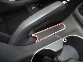 Using a screwdriver or remover, remove the parking brake cover (A).