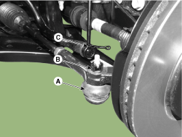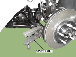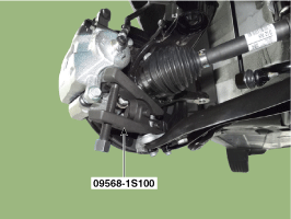 Loosen the lower arm nut (A) and then remove the lower arm ball joint by using SST(09568-1S100).