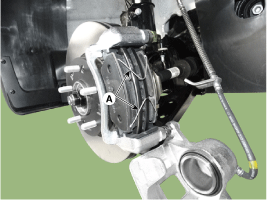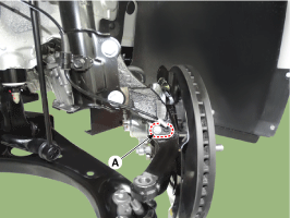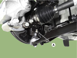Loosen the bolt and then remove the wheel speed sensor (A).