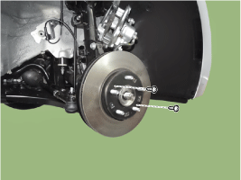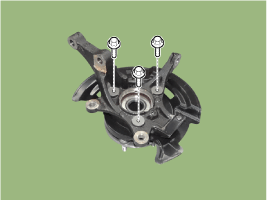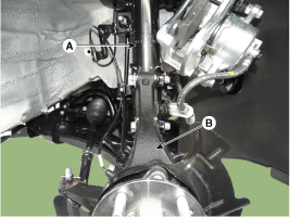 Loosen the strut mounting bolts (A), nuts (B) and then remove the knuckle assembly (A).