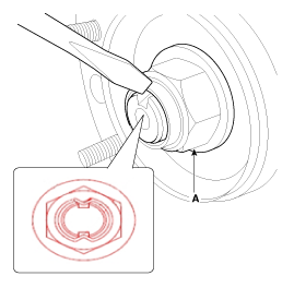 After installation driveshaft lock nut, stake the lock nut using a chisel and hammer as shown in the illustration below.