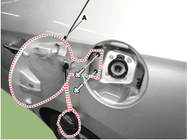 Loosen the mounting bolts and remove the fuel filler door (A).