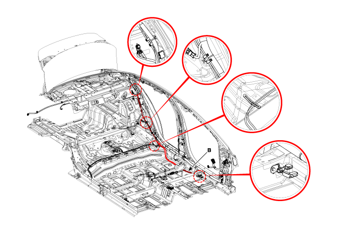 Disconnect the fuel filler door barcket (A), remove the cable (B).