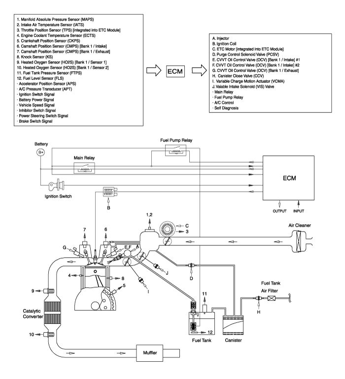 SymptomSuspect areaEngine will not start or hard to startVapor hose damaged or disconnectedEngine hard to startMalfunction of the Purge Control Solenoid ValveRough idle or engine stallsVapor hose damaged or disconnectedMalfunction of the PCV valveRough idleMalfunction of the Eva ...