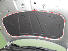 Using a clip remover, remove the clips and then the hood insulator pad (A).