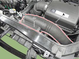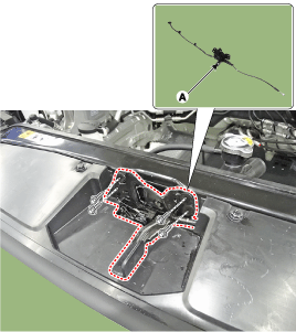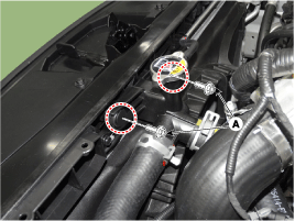 Loosen the mounting bolts and remove the hood latch assembly (A).