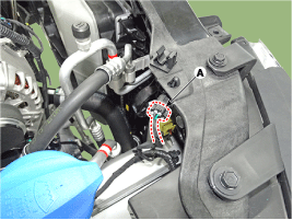 Disconnect the connector (A), then remove the wiring mounting clips.