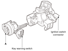 Remove the ignition switch (A) and disconnecting the Key Warning / immobilizer connector.