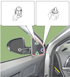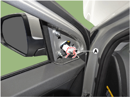 Disconnect the outside rear view mirror connector (A).