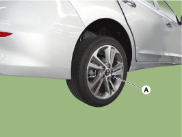 Be careful not to damage the hub bolts when removing the rear wheel and tire (A).