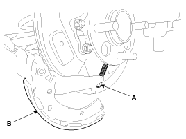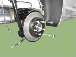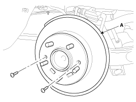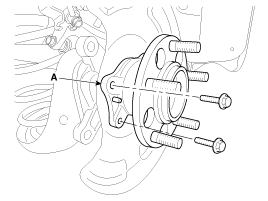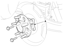 Loosen the hub mounting bolt and then remove the hub (A) from the torsion beam.
