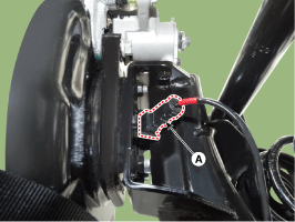 Remove the brake hose (A) and then loosen the cylinder bolt.
