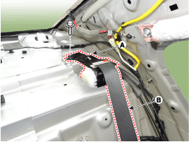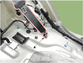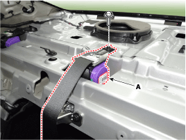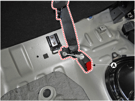 After loosening the mounting bolt, remove the rear seat belt lower anchor (A).