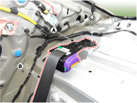Loosen the retractor (A) mounting bolt, remove the rear seat belt (B).