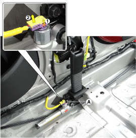 Disconnect the front seat belt pretensioner connector (A).