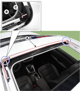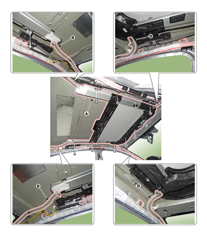 Loosen the mounting screws (A) and remove the sunroof glass (B).