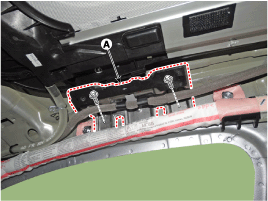 After loosening the mounting bolts, then remove the assist handle bracket (A).