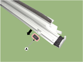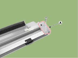 After loosening the mounting screws, remove the drip rail assembly (A).