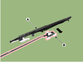 Separate the guide assembly (A) and the cable (B) by pushing them in the direction of the arrow.